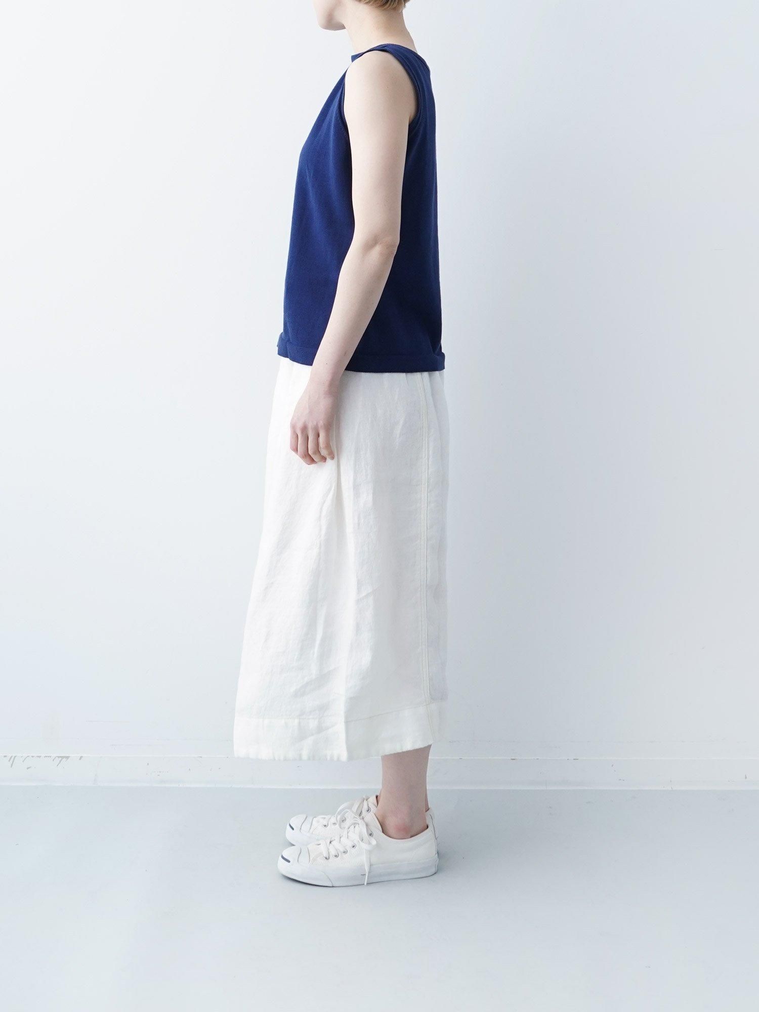 KINOTTOのニットは特殊な機械で編みあげているので、前身頃と後ろ身頃、袖や肩に縫い目がないシームレス(無縫製)が特徴です。中に合わせるインナーを気にせず着ることが出来るノースリーブニットで、生地の着心地の良さはもちろん、一枚着としてもベストように重ねることが可能なシルエットも魅力になっています。シンプルでボトムスを選ばず、幅広い様々な着こなしを楽しんで頂けます。シリーズのカーディガンとアンサンブルとして合わせても素敵です。