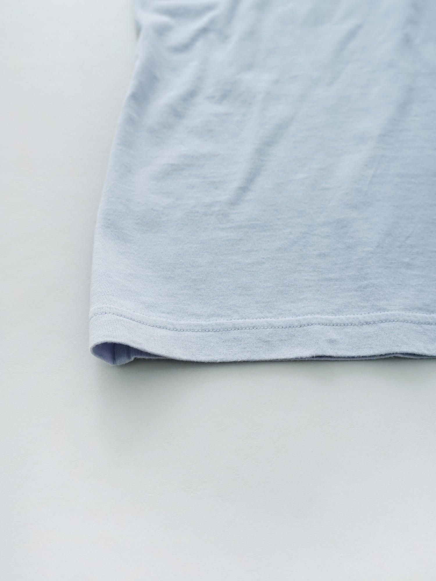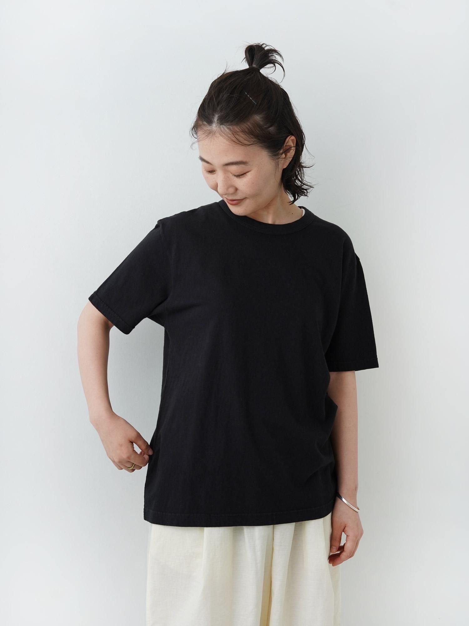 KINOTTOのカットソー素材は、ふんわり感が何よりの魅力。適度な張り感も持ちながらもからだを包み込む柔らかい素材感は、繰り返し洗濯しても変わりません。むしろ、水にくぐらせることで、より肌に馴染む着心地を味わうことができます。メンズTシャツは肩幅、袖丈と着丈のバランスを考えた、スタンダードなスクエアシルエットです。メンズ仕様ではありますが、少し大きめに着たい女性にも手に取りやすいサイズ感に仕上げています。カラーラインナップをリニューアルした人気のカットソーシリーズ。一枚で着ても、時にはインナーにも便利な KINOTTOのカットソーはぜひワードローブに加えて頂きたいアイテムです。