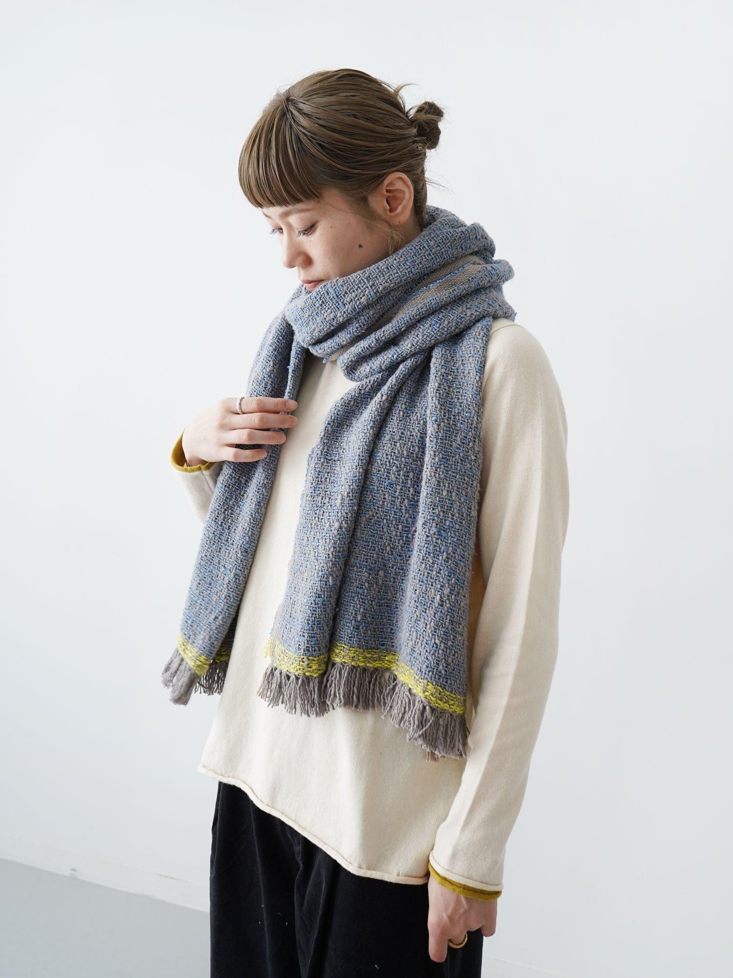 Suno&Morrisonの中判ストール。オーガニックコットンの糸を使用しており、コットン100%とは思えない独特の素朴さと柔らかさが特徴になっています。昔ながらの織り機でゆっくりとふんわりワッフル状に織られたオリジナルの生地は、優しい手触りで肌に馴染む心地よさ。ざっくりとした見た目ですが、触れてみるとガラ紡が作りだす風合いの魅力をしっかりと感じます。冬でも暖かく春先まで使える素材感が嬉しいストール、首に巻いたり、ショールとしてさらりと肩に掛けることも出来る、使い勝手の良いサイズ。首元に程よいボリューム感を持たせたい時やウールがあまり得意ではない方にもオススメしたいアイテムです。色と色が混じり合い深みを与える配色、組み合わせによって表情がガラリと変わる3色なので、コーディネートのポイントにお好みの色を選んでみてください。