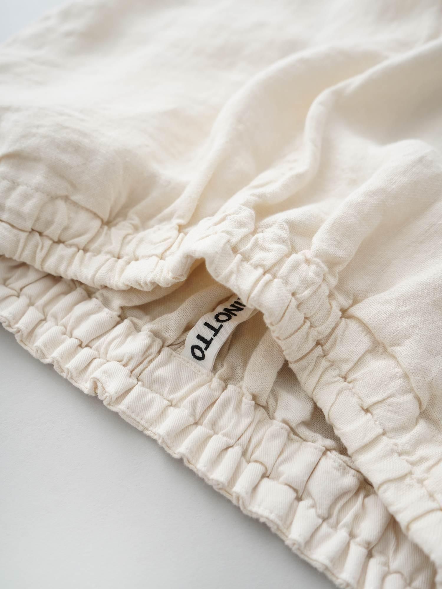 丈夫で通気性に優れたオックスフォードクロス。素材はコットンが一般的ですが、KINOTTOはリネン糸を使って織り上げました。しなやかな光沢感があり、柔らかくふんわりとした質感に仕上がっています。日々の様々な動作をイメージし、細部までシルエットにこだわった快適に穿くことが出来るイージーパンツ。すっきり見えするテーパードのようなライン、ウエストにはぐるりゴムと紐を通しサイズ調節することで、包み込むようなしっかりとしたホールド感もプラスしています。様々な体型を想定してパターンを引くことで、ジェンダーレスにお楽しみいただける一着、選ぶ幅が広がる豊富なカラーバリエーションも魅力です。