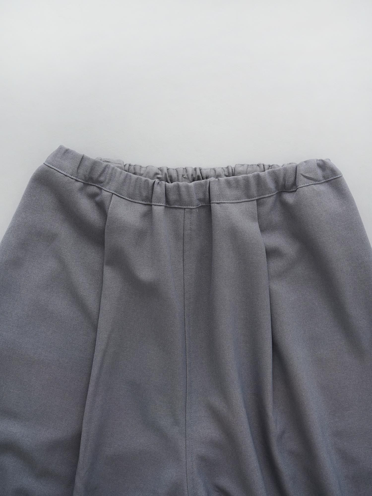 ソフトサージは、ウールサージのようなキレイ目な雰囲気のある素材を使用しており、程よい厚みと柔らかな着心地の良さを兼ね備えています。ランプパンツのランプとはかたまりという意味。ぽってりとした四角のようなかわいいシルエットにタックを施すことで、広がりを抑えたほんのりと丸みを持たせたようなデザインが特徴的です。ウエストはゴムと紐で調節可能な仕様、加えて股上も深めなので穿きやすくなっています。小柄な方もバランスよく取り入れて頂けるように着丈は敢えて短めの設定しました。軽量でシワもつきにくく何かと嬉しいポイントが満載、オケージョンから日常使いまでシーンに合わせて取り入れることが出来るパンツです。