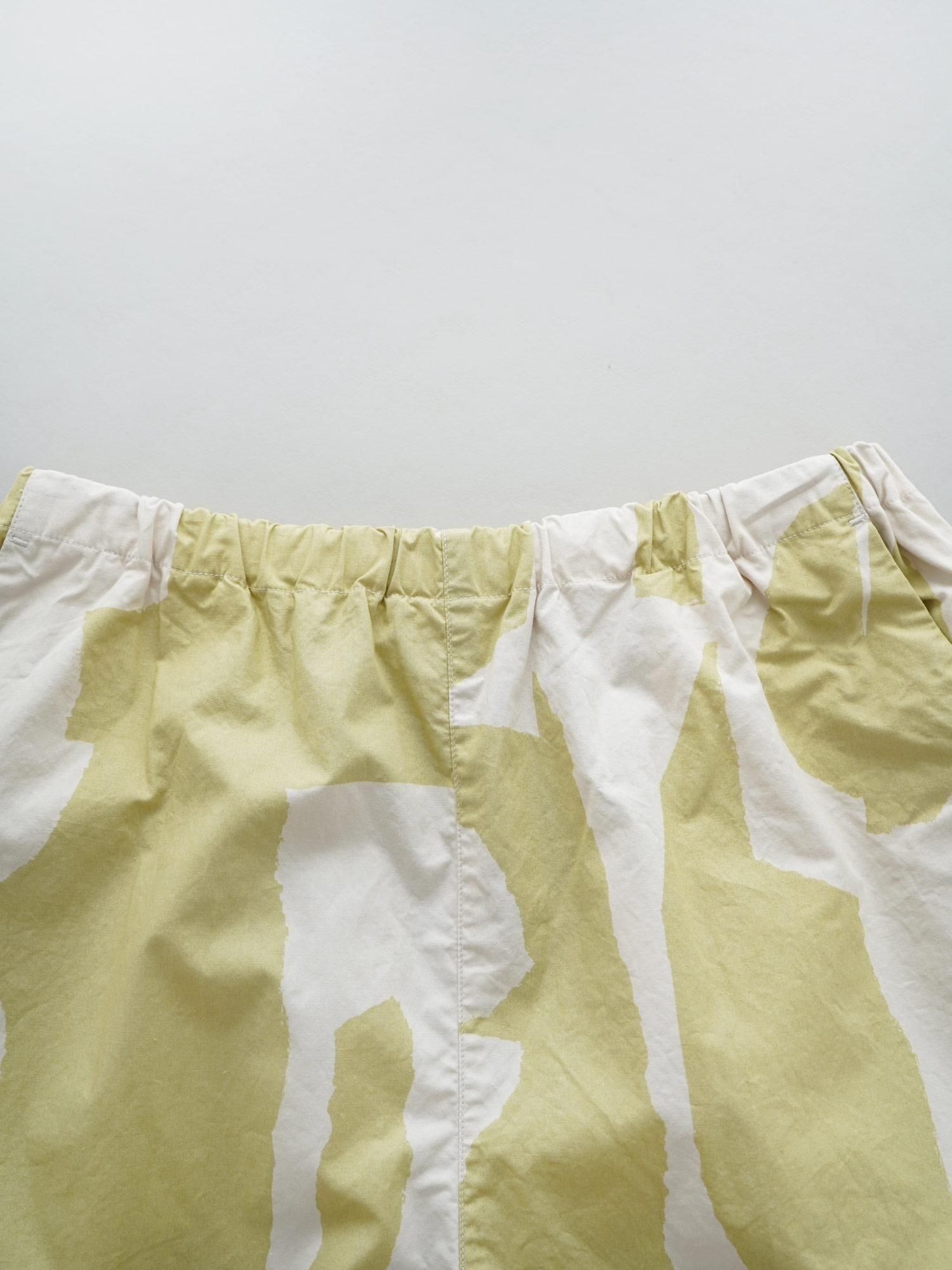 進む季節とともに移ろう情景を色と色が繋がり変化していく=toneと捉え、そこからイメージを膨らませたgrinオリジナルテキスタイルのtoneプリント。適度な張りで目の詰まったコットンダンプ生地に表現しており、色を掛け合わせた大胆な柄にはよく見るとお花のシルエットが隠れています。ふんわりとした広がりが綺麗で、スカートのようにも見えるガウチョパンツ。絶妙な長さが可愛い半端丈とタックを施すことで生まれるゆとりによって、動きやすく快適な穿き心地になっています。コーディネートに加えるだけで華やかさが増し、着こなしの幅が広がるパンツです。