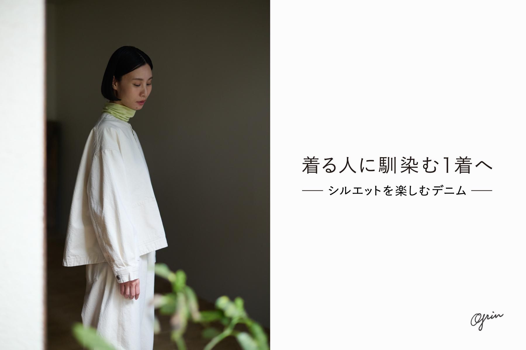 程よい厚みで肌馴染みがよく、穿きやすい10ozデニムシリーズ。オーソドックスなデニムよりも、トラウザーに近いシルエットがキレイなデニムパンツを作りました。ウエストの後ろのみにゴムを利かせ、リラックス感のある穿き心地を大切にしながらもお腹周りをすっきりと見せる仕様になっています。脇の切り替え線を前に回して、膝辺りから緩やかなカーブを描くように膨らみをつけ下重心寄りにすることで、洋梨を彷彿とさせる立体的なシルエットに。着ていくほどに馴染み、風合いの経年変化を楽しめるところもデニムの良さのひとつ。同シリーズのドットジャケットと合わせたセットアップの着こなしもカッコよく、カジュアル過ぎない大人のスタイルが完成します。
