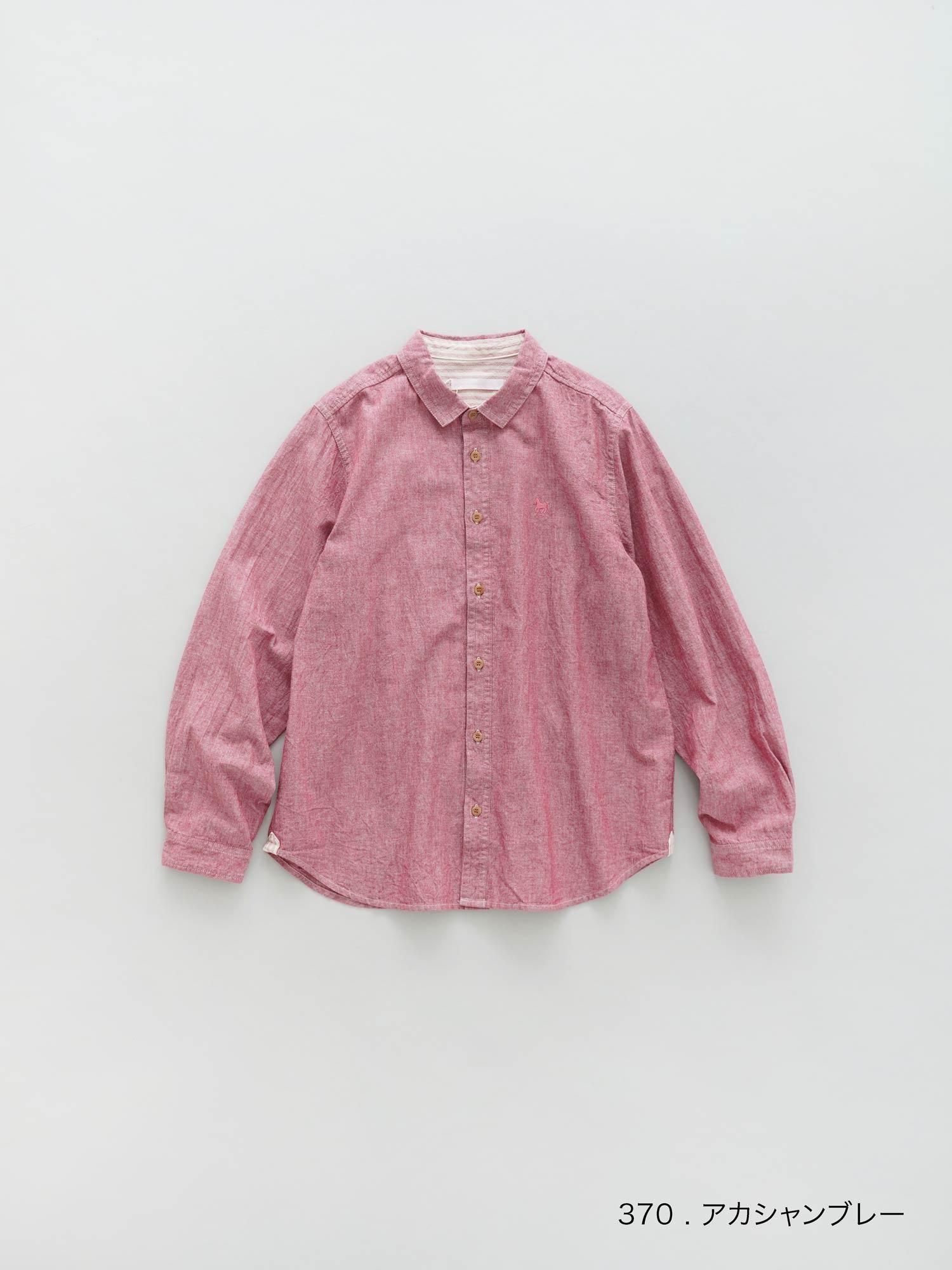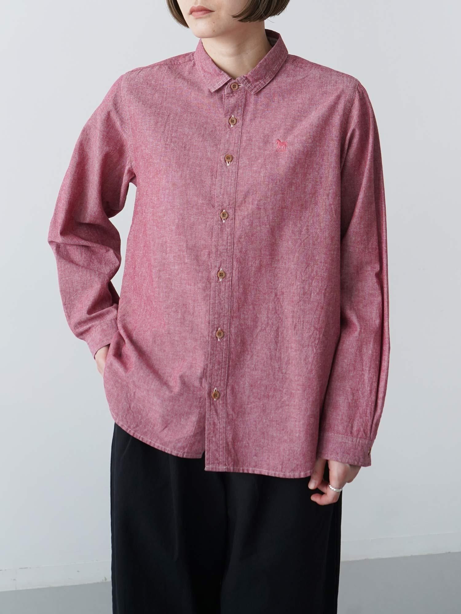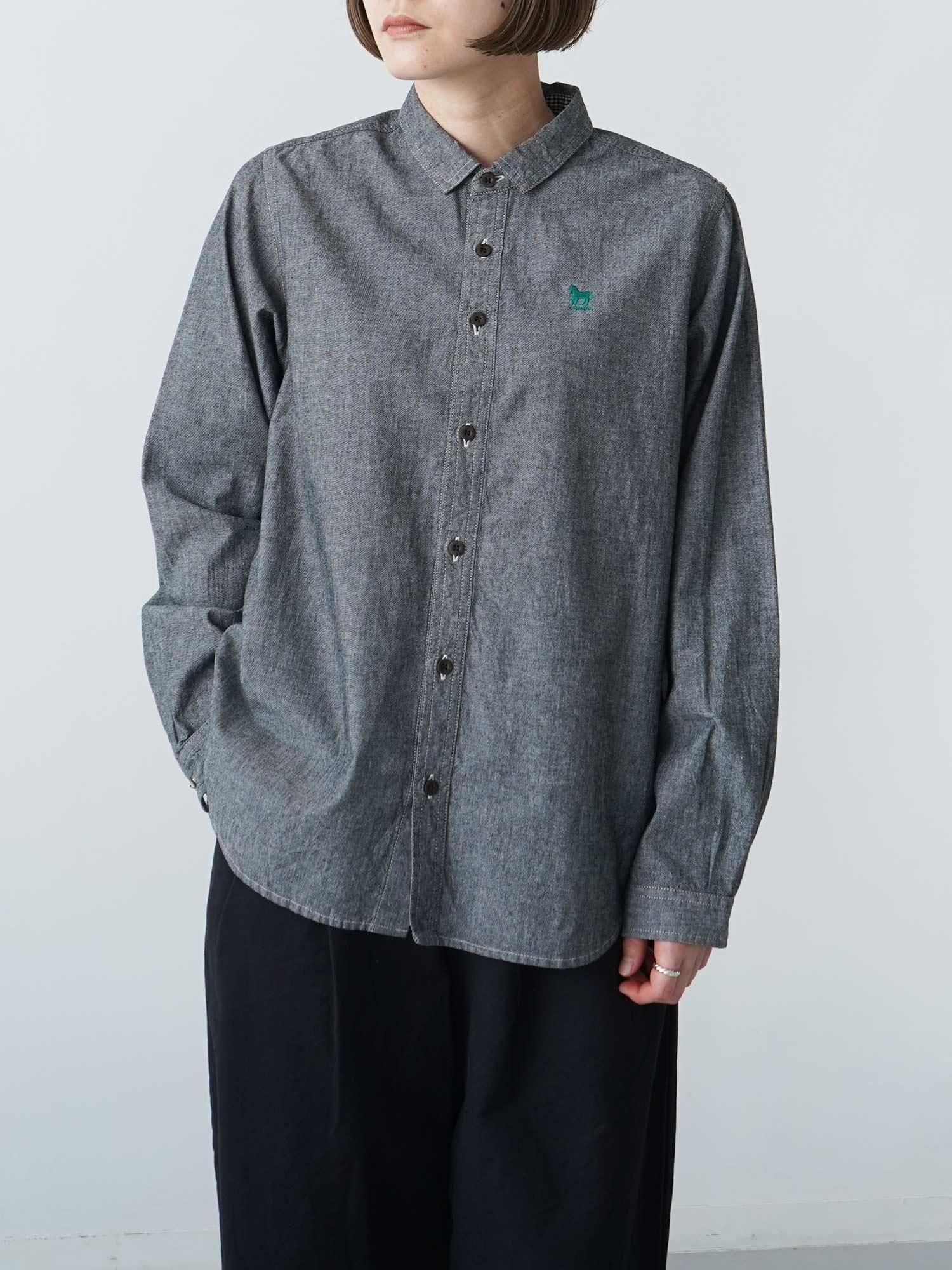 独特な奥行きのある色ムラが特徴になっているN/L定番素材のダンガリー。着心地の良さとバイオ加工を施すことで柔らかな風合いとワークらしいこなれた雰囲気が生まれます。シンプル且つベーシックなデイリーシャツは、大きすぎず小さすぎない絶妙なサイジング。胸元の馬刺繍は立体感があり、小ぶりながらも存在感のあるワンポイント刺繍です。襟の内側や裾脇にはボーダー(裾脇はストライプ)やギンガムチェック、後ろの同系色のテープといった細部のディティールまでこだわりを詰めました。程よい生地の薄さに肩まわりといったサイズ感がすっきりしているので、ニットやスウェットの下に重ねるレイヤードの着こなしもオススメです。着回しに便利な日常使いに重宝すること間違いなしのアイテムです。