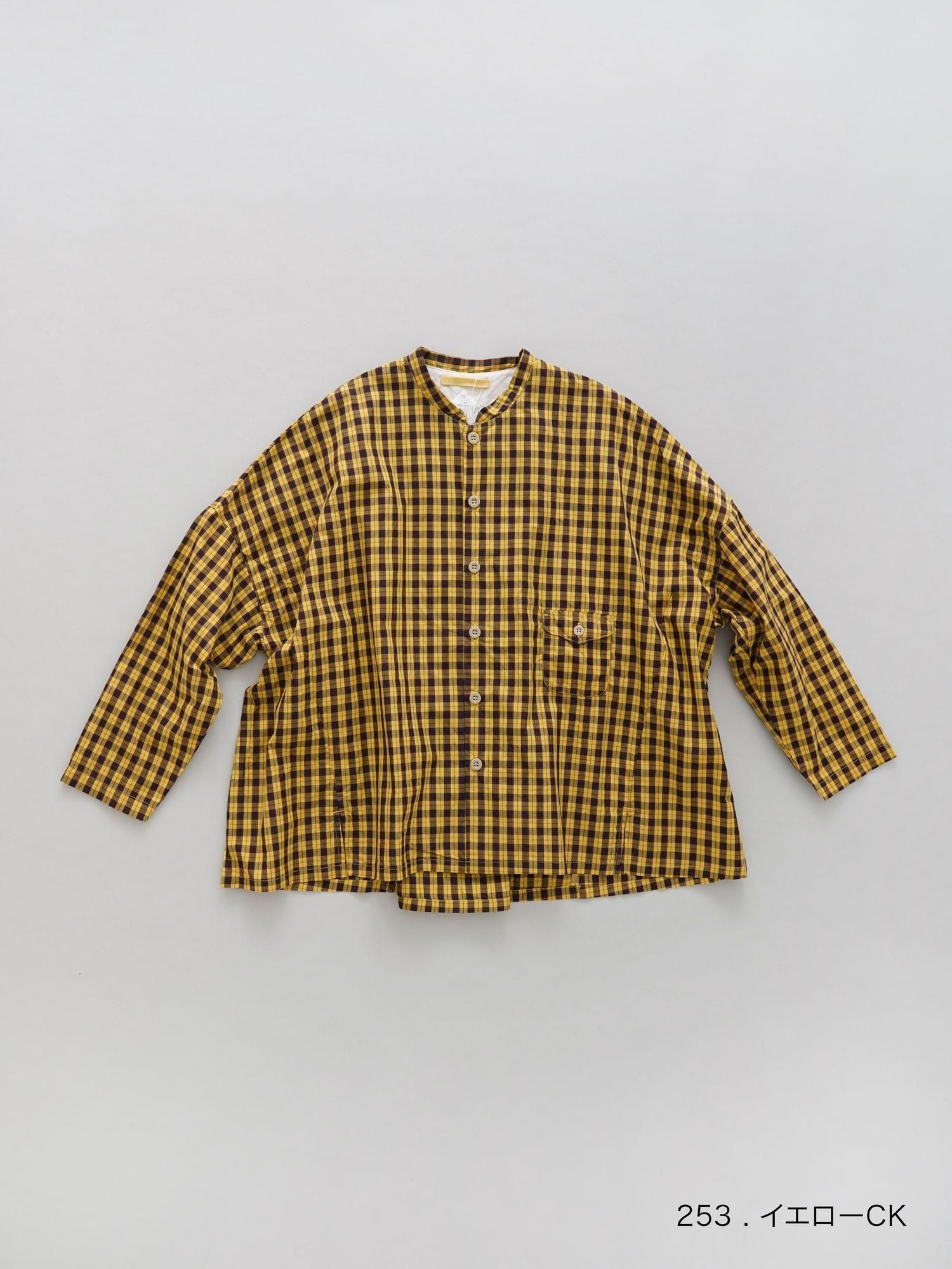 100番手の双糸で織られた高密度の適度なハリ感としなやかさを持ち合わせたブロード生地。さらりとした肌離れの良い着心地が魅力です。横に広いワイドな身幅に対して、襟元と袖口はすっきりとするメリハリの利いたデザイン。横の脇線を前に持ってくることで、立体的な個性の光る形を表現しています。背中に施したタックが、着用時のふわっとした絶妙なゆとりや流れを生み軽やかさをプラス。左側の下には蓋つきのポケットを付けました。