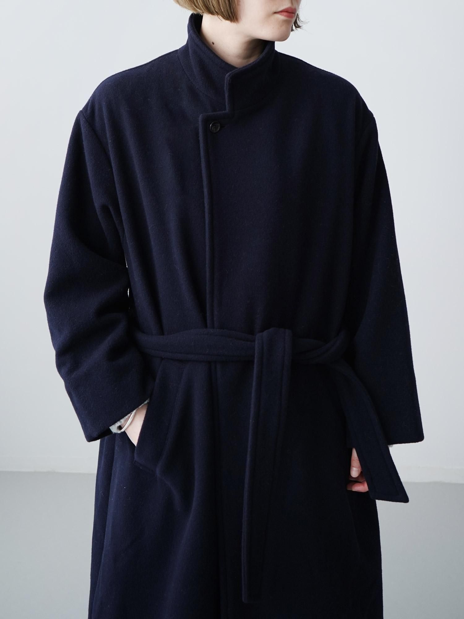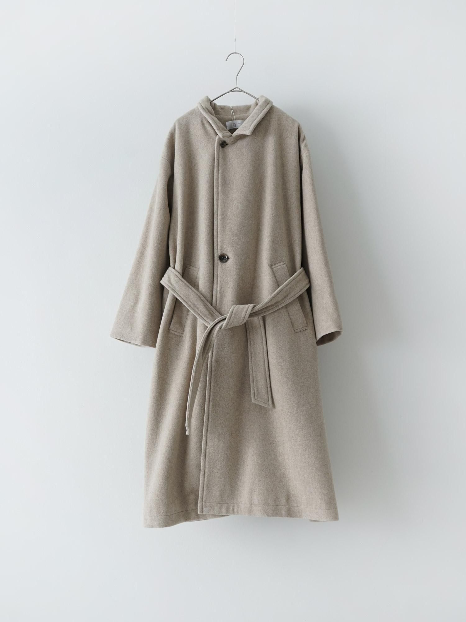 grinで人気のソフトウールビーバー。スーパー100という繊維の長い上質なウールを使用しています。中に着込みやすい身幅の広さを取りつつも、縦のラインをすっきりと見せてくれるストンとしたシルエットのコート。襟が2wayになっており、ボタンを開けるとテーラードのような上品な雰囲気で、閉めるとカチッとしたスタンドカラーがかっこ良いデザインです。ウエストにはベルトが付き、好みでローブのように絞って頂く着こなしも素敵です。裏地付きのしっかりとした仕様ですが重たくならず、軽やかに心地よく羽織ることが出来るコートに仕上げました。