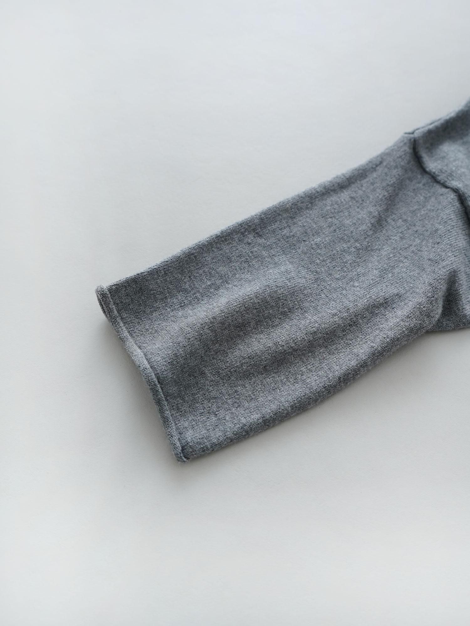 grinで人気の綿カシミアニット。肌触りの良さと身体に張りつかないよう、編み地やシルエットにこだわったニットプルオーバーを作りました。肩から身幅にかけてゆったりとワイドに作られたドルマンシルエット。着用した際の流れるようなドレープが動きのある軽やかさを生み、着丈をややコンパクトに設定しているので身幅の広さがあってもすっきりとした雰囲気で着ることが出来ます。たくさん並んだ小さなボタンがデザインポイントで、前後どちらを前にしても着ることが可能な2way仕様が着こなしの幅をグッと広げてくれます。
