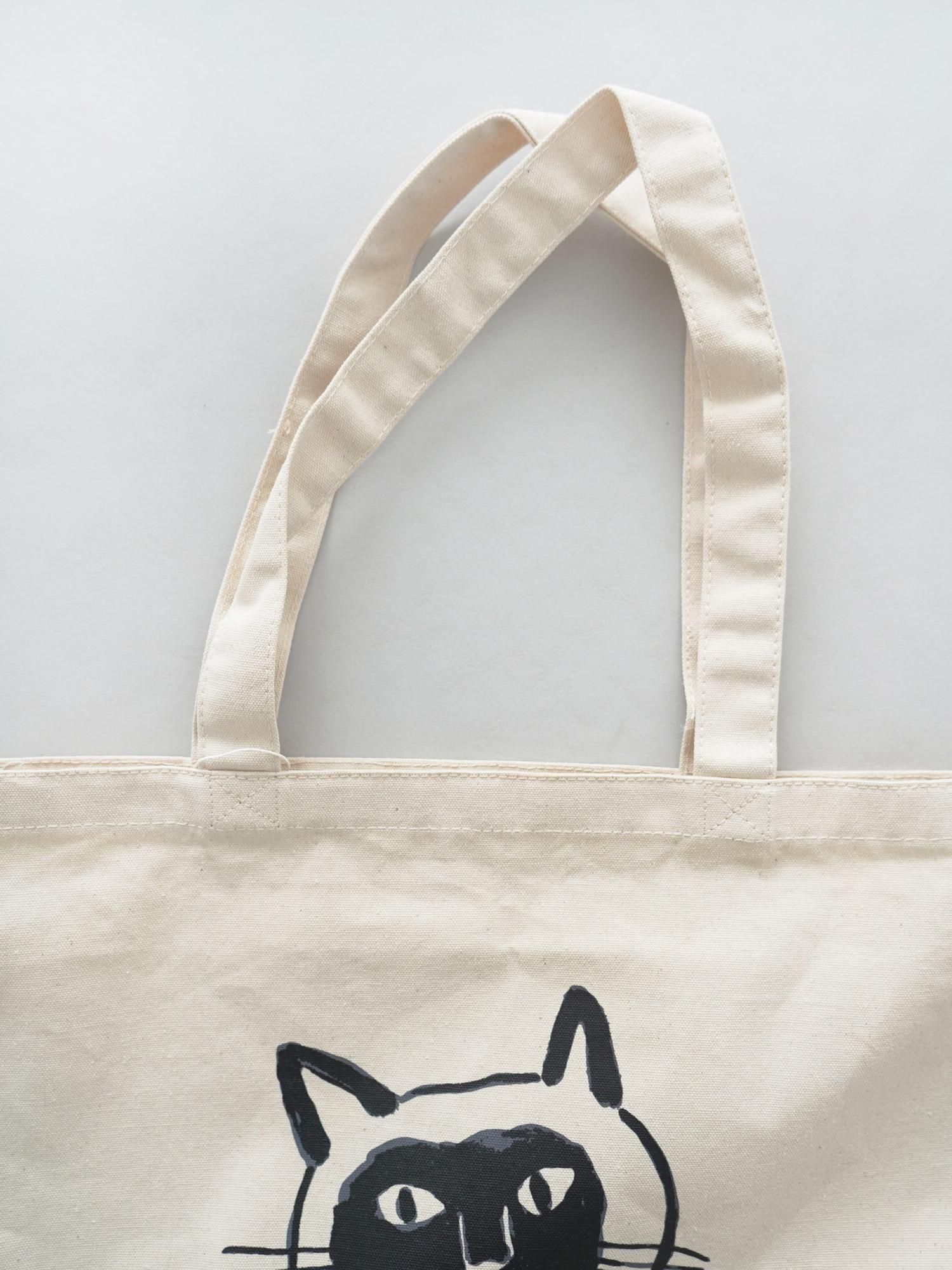 grinで大人気の動物シリーズ、厚地でちょうど良い大きさのトートバッグにネコのプリントを施しています。可愛らしさがありながらも、単色で描かれたどこか大人な雰囲気のある表情が魅力的で目を引く存在。持ち手が長く肩からも掛けやすいので、ちょっとしたお出掛け時にもサブバックとしても使いやすい絶妙な大きさが嬉しいポイントです。