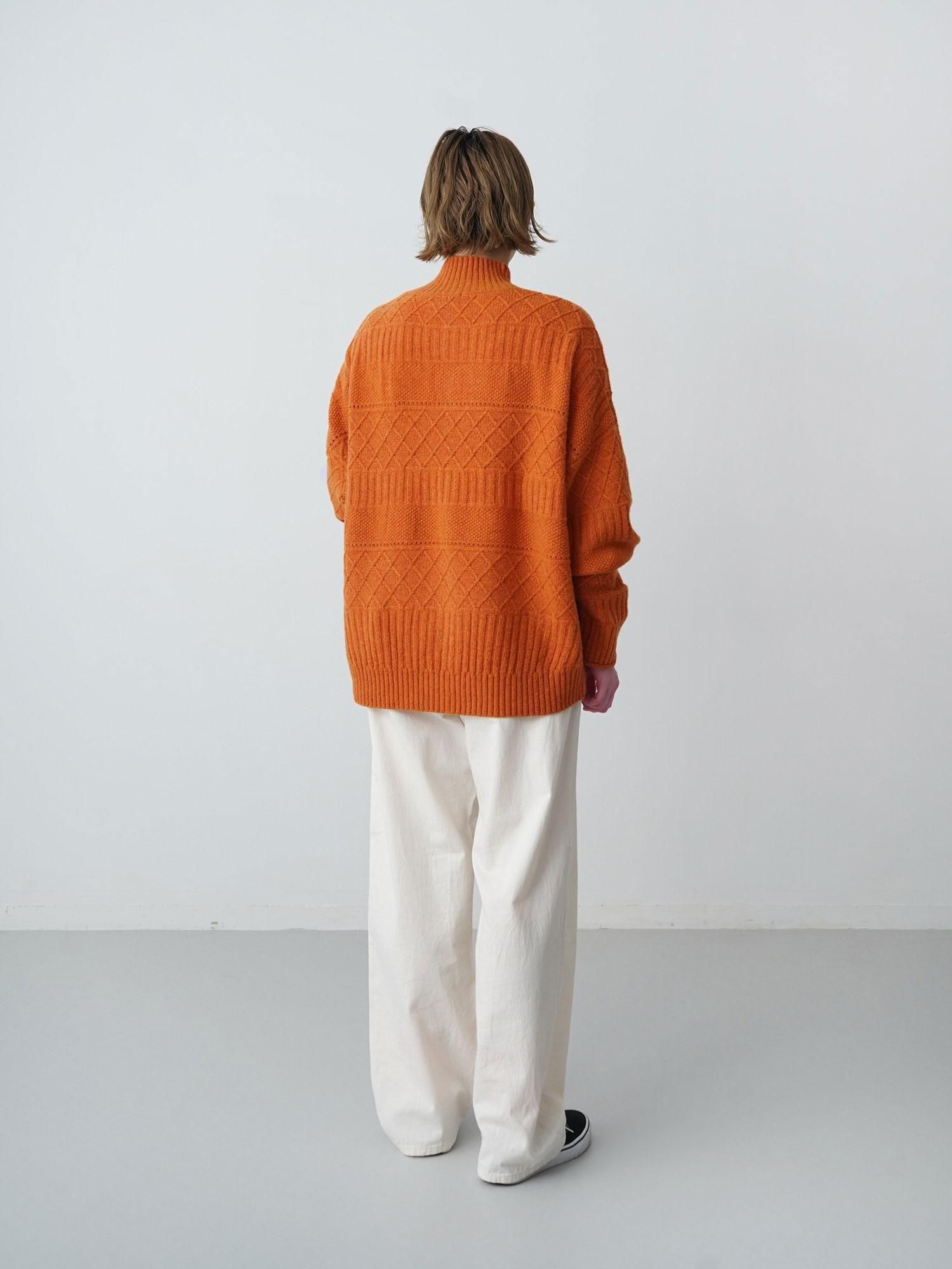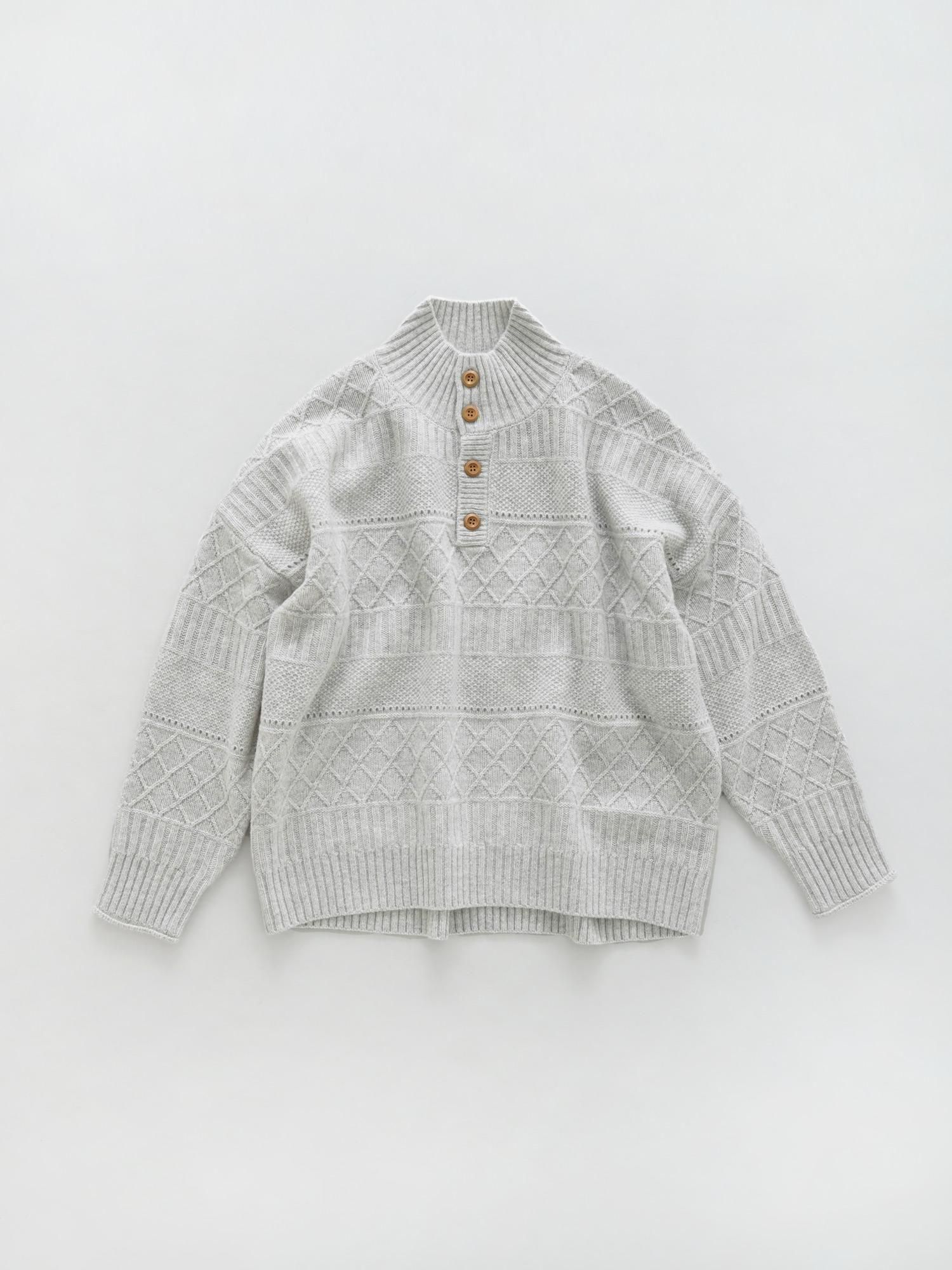3. ラムナイロン アラン柄ヘンリープルオーバー