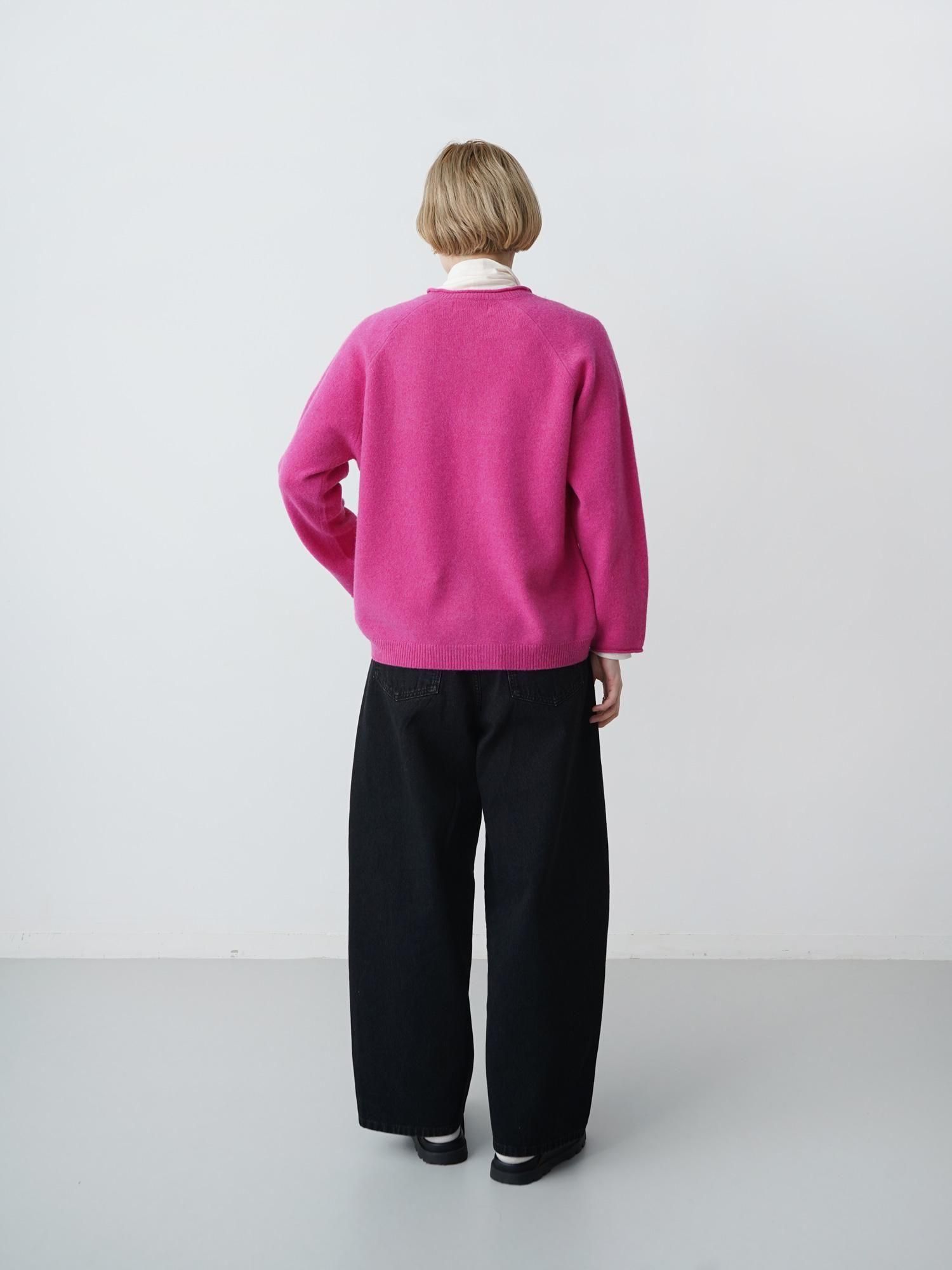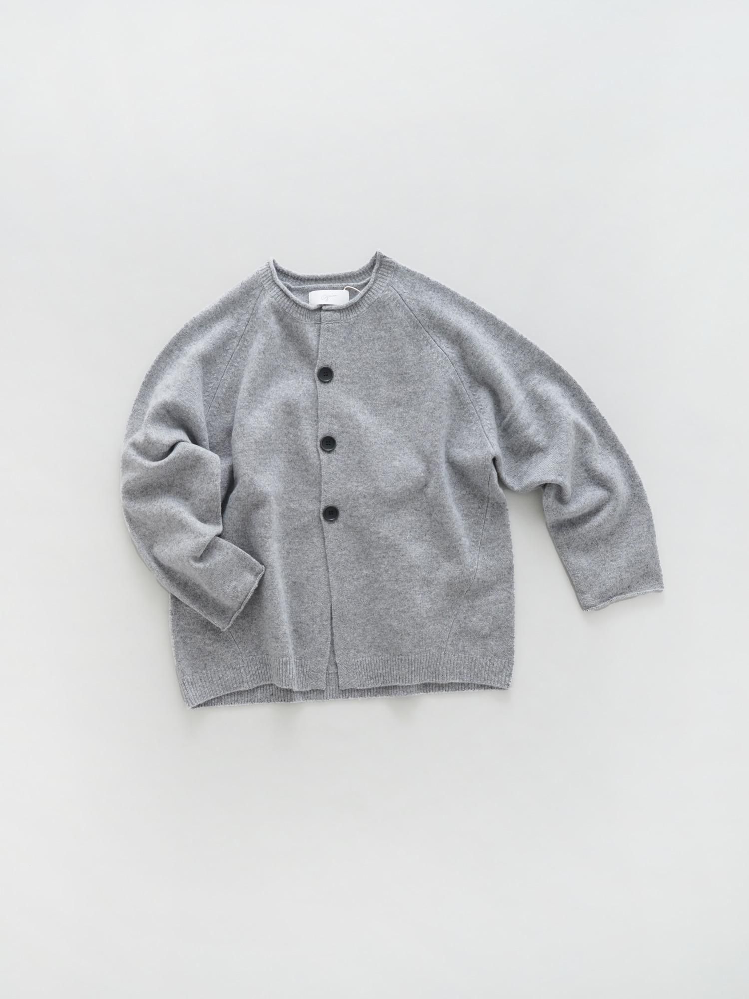 grin定番のメリノニットよりも細い糸を使用した、ライトメリノウール。オーバーウォッシュ(洗い加工)を施すことで編み目を詰まらせ、ふんわりとした肌触りの表面感に。独特の素材感とパキっとした発色の良さが魅力になっています。脇の線を前に持ってきており、ほんのりと内に入ったコクーンシルエット。3つ並んだ少し大きめのボタンが目を引き、ポワンとした袖、襟先と袖口がクルンとしたデザインがかわいいカーディガンです。前と後ろの長さに変化をつけ軽やかさもプラス。明るいカラー展開がコーディネートの主役にピッタリです。