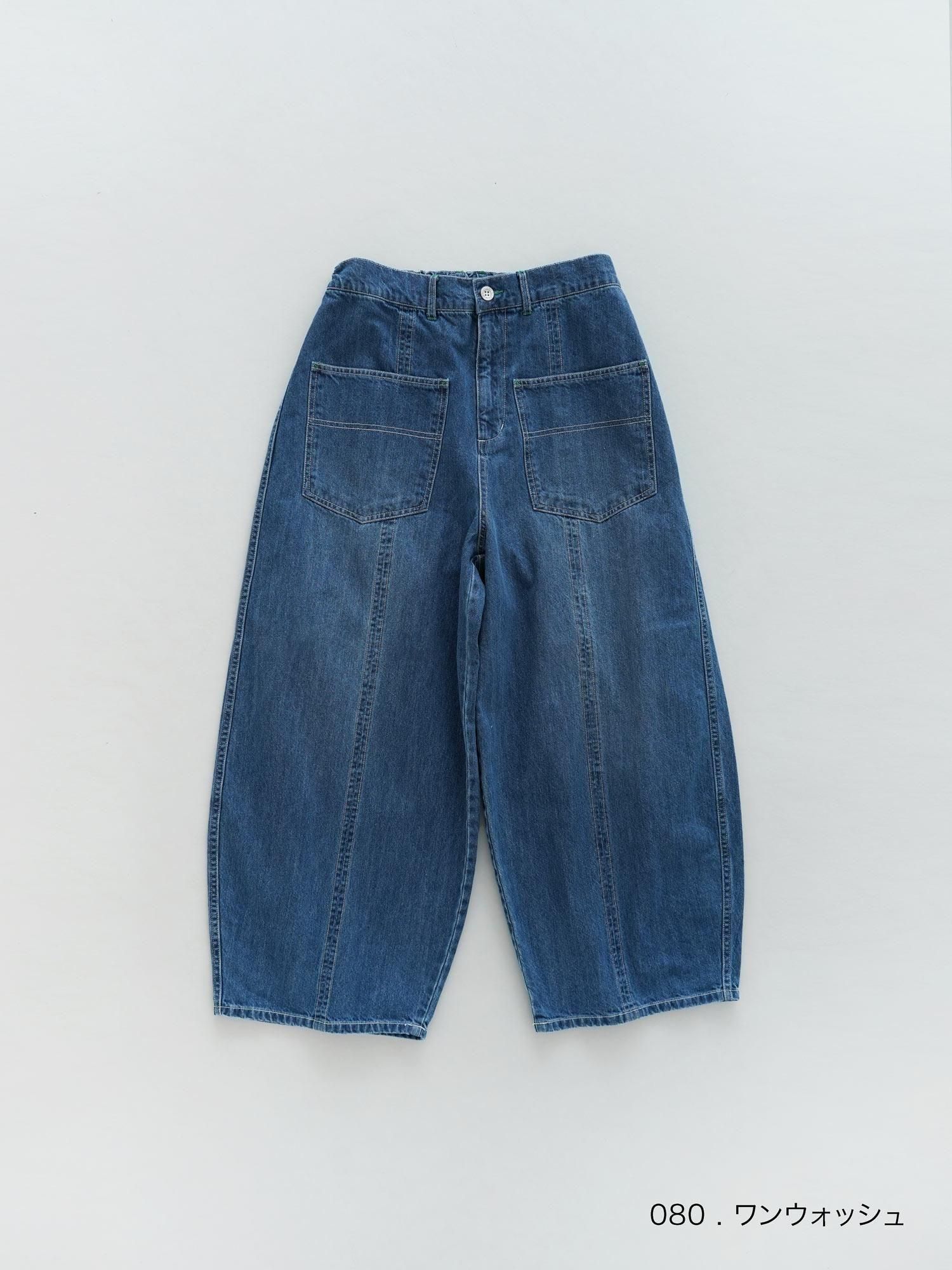 縦糸、横糸共にムラ糸でヴィンテージ感を出したジャンブルパンツ。10ozデニムは一般的なデニムよりもやや薄く、柔らかさとコシを兼ね備えたオールシーズン穿くことが出来る生地感になっています。身体に馴染みごわつかない穿き心地が魅力のデニムパンツ、裾に向かってほんのりテーパードしています。フロントの2本のステッチと、大きなパッチポケットがポイント。バックスタイルにも同じような大きなポケットが付いており、前後同じ表情なのが〇後ろウエストにはゴムが入り、ストレスなく穿くことが出来ます。通常のデニムよりも柔らかな素材感から無骨な雰囲気になりすぎず、取り入れやすい一本に仕上がりました。